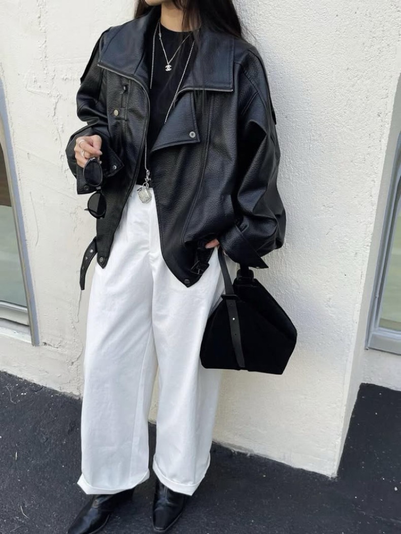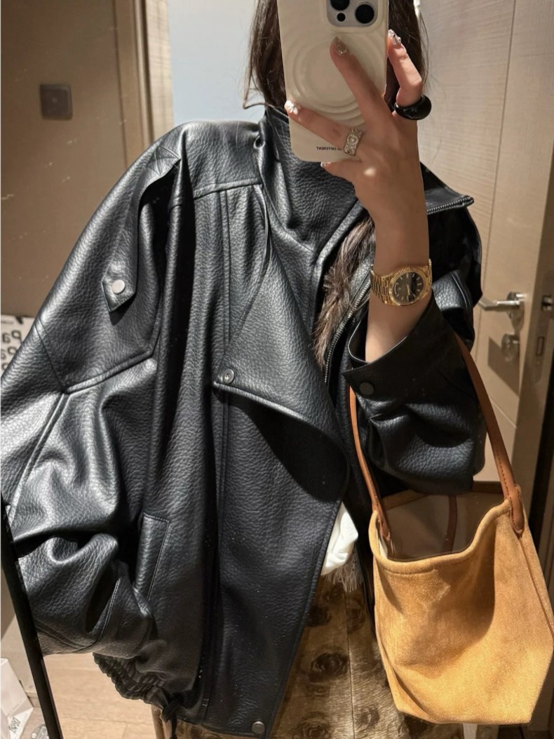 超質感Oversized 中性復古雙領寬鬆皮皮衣